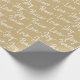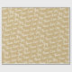 A design neste papel de embrulho de presente de Natal são palavras simples "Paz-Amor-Alegria" repetidas de ponta a ponta. O texto aparece na caligrafia branca manuscrita em fundo dourado.