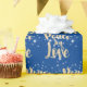 Joy da Paz Ama o texto dourado com estrelas brancas sobre fundo azul. A cor de fundo pode ser alterada.