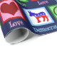 Legal papel de embrulho do partido democrático com um sinal de paz, coração, e burro democrático em vermelho, branco e azul. Bela PAZ AMA BOLSA DEMOCRATA.