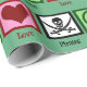 Peace Love Pirata presente de Natal. Um sinal de paz, coração, e um crânio e espadas cruzadas fazem um pirata giro presente para alguém que ama vagabundos ou joga em uma equipe de mascote Pirata.