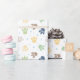 Papel de embrulho para um menino Aniversário com pegadas coloridas de dinossauro em azul, verde, bege e e amarelo no fundo branco. - Kate Eden Art