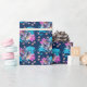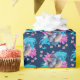 Um peixe combatente siamês com água, flor de lótus e flores de cerejeira em um fundo azul escuro