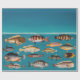 Uma bela design que mostra diferentes tipos de peixes coloridos nadando sob a água azul do oceano. Um design perfeito para quem ama peixe, pesca, ao ar livre, esportes de aventura, natureza e temas náuticos.