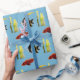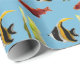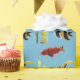 Excelente para amantes de peixes e pescadores com padrão geométrico de peixes nadando em um mar azul entre algas marinhas. Esta arte de peixes aquáticos foi criada da minha pintura de vidro original. Copyright Annabel Potter