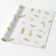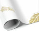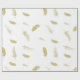 Padrão de embrulho de presente elegante apresenta penas flutuantes douradas em fundo branco