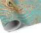 Papel De Presente Penas Douradas de Peacock em Aqua