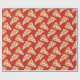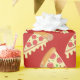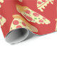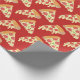Este papel de embrulho de presente divertido apresenta um padrão repetitivo de fatias de pizza de pepperoni pingando com queijo.