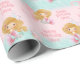 Pequena sereia bonita com cabelo louro, sob papel de embrulho de aniversário do mar, em azul-rosa e-aqua. Belo e bonito design para o Aniversário da menina. Personalize facilmente o número de anos e todo o texto. Você pode deixar os textos iguais ou diferentes do tipo 2 no papel. Visite a loja para a linha de cheio de produtos disponíveis e também a design semelhante com a sereia com o cabelo escuro :) - Kate Eden Art