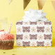 Belo papel branco de embrulho para o aniversário de uma criança de um pequeno rosto de guaxinim marrom.