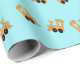 Um padrão delicioso com pequenos trens laranja se desaguando sobre um fundo azul sereno, evocando uma sensação de nostalgia e de capricho. Perfeito por adicionar um toque de charme à dádiva infantil que precisa de um motivo lúdico.