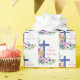 Quarenta anos de vida religiosa, quarenta anos de duro, generoso e cristão. Deseje o melhor para uma freira excelente no seu 40º aniversário com este presente, souvenir, doar ou cheio essencial de cor e amor. Uma grande cruz azul é ao lado de flores silvestres coloridas com folhas.