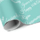 Personalize os nomes, Feliz Aniversário em um roteiro branco no Light Teal Background Wrapping Paper. Basta adicionar uma arco.