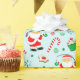 Pescar o prato de Natal em forma de prenda ou decoração de festas de férias com Papais noeis pescador segurando uma vara de pesca rodeada de guloseimas de Natal.