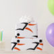 Um símbolo de ícone preto e laranja de uma pessoa em execução. Este design parece realmente eficaz nestes papéis de enrolamento