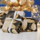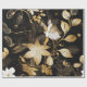 Papel De Presente Pétalas Douradas: Preto Floral e Dourado