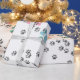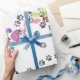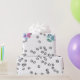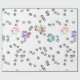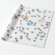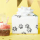 As patas de animais de estimação rastreando aleatoriamente sobre o design. Peças coloridas grandes e patas menores em tons de cinza. O fundo branco deixa muito espaço para personalizar com um nome, etc.