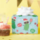 Picles de Natal bonitos com neve, icestares e chapéus de santa jogando Pickleball em fundo azul claro