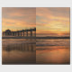 Uma bela foto de paisagem de um pôr do sol da praia de píer.