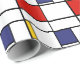Papel de enrolamento inspirado na pintura de arte moderna Composition C De Stijl de Piet Mondrian. Repetir é a cada seis polegadas.