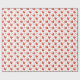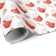 Este papel de embrulho apresenta um padrão alegre de canecas vermelhas de chocolate quente (ou café) tocado com creme chicoteado e cercado por canas doces de menta em fundo branco.