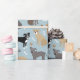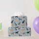 Pitbull Bonito com cores pretas, desfocadas, brindle, azuis e casaco vermelha com estampas de pata e padrão de ossos de cães.