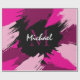Papel De Presente Pincéis de pinceladas de nome rosa quente com mono