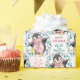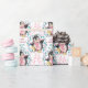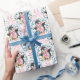 Neste papel de embrulho de Natal giro, um pinguim adorável veste um cachecol listrado rosa e branco e se senta num trenó. O pinguim está rodeado por uma coroa azul e uma coroa vermelha. As espirais cor-de-rosa aumentam o interesse. Seu texto personalizado está em azul e rosa. Este é um papel maravilhoso para uma neta ou uma filha jovem.