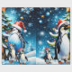 Pinguins bonitos num estilo animado, todos vestindo chapéus festivos de Papai Noel. Eles ficam em volta de uma magnífica árvore de Natal decorada, decorada com ornamentos coloridos em várias formas e tamanhos. Uma grande estrela ouro brilha no topo da árvore, dando a toda a imagem um brilho festivo. Esta design capta a essência do Natal de uma forma brincalhona, transmitindo um sentimento de calor, alegria e comunidade no meio de uma paisagem vinícola. '