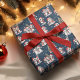 Este papel azul de embrulho de Natal marinho apresenta um padrão divertido de pinguins em chapéus de Papai Noel vermelho que estão comemorando as férias de inverno. Os pinguins engraçados decoram árvores de Natal, conhecem familiares e amigos, e skates de gelo, então este design é perfeito para capas de presentes festivos. Este padrão está sobre um fundo azul marinho sólido.