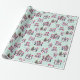 Este alegre papel de embrulho de Natal verde e rosa apresenta um padrão único de pinguins em roupa cor-de-rosa se divertindo e celebrando as férias de inverno. Pinguins bonitos enfeitam árvores de Natal, encontram família e amigos, e vão patinar gelo, então esta design é perfeita para pratos festivos na moda.