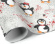 Um pinguim adorável, papel de embrulho perfeito para presentes de Natal! As crianças vão adorar este papel de embrulhamento de padrões de pinguins que apresenta pinguins bonitos de desenho vestindo chapéus e gravatas arcos, bonecos de neve, flocos de neve, corações vermelhos e doces. Excelente de Natal e papel de embrulho de inverno que é bonito, simples e divertido. Esquema de cor preto, branco e vermelho é um clássico de Natal!