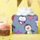 Flocos de neve vermelhos, verdes, roxos, azuis e pinguins festivos papel de embrulho de Natal Festivo.