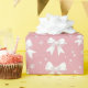 Pink coquette bow snowflake Christmas wrapping paper. Pretty white bow and snowflake on a pink background.