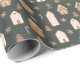 Whimsical Christmas theme wrapping paper featuring illustration of gingerbread houses with pink accent.