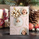 Christmas gift wrapping paper feature modern Merry Christmas script and botanical leaves wreaths, with personalized family name and 6 photos in blush pink and gold, simple and elegant.
