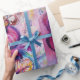 Corneta colorida, branca, rosa-rosa engraçada, tocando coruja com uma coruja expressiva e notas musicais alegres, flores, folhas em vermelho vibrante, fúcsia, violeta, roxo, azul, cores brancas, pintura aquarela de Búlgaro Lumini (c)