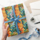 com design de arte original de pintura aquosa de girassol brilhante, colorido, amarelo e laranja em foco próximo, estilo macro. Estilo único e detalhado, quase botânico, esse design floral lembra as flores ao sol num dia quente, verão.