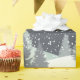Pinheiros paisagizam flocos de neve em uma cinza escura de fundo de inverno.