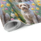 Um cão alegre senta-se pacificamente sobre a relva verde-luxuosa, rodeado por primavera coloridas floridas sob um céu azul macio. Esta pintura digital de óleo captura um momento sereno com pinceladas expressivas, cores quentes e um senso de alegria gentil.