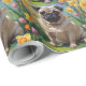 Um cão alegre senta-se pacificamente sobre a relva verde-luxuosa, rodeado por primavera coloridas floridas sob um céu azul macio. Esta pintura digital de óleo captura um momento sereno com pinceladas expressivas, cores quentes e um senso de alegria gentil.