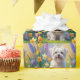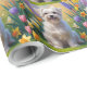 Um cão alegre senta-se pacificamente sobre a relva verde-luxuosa, rodeado por primavera coloridas floridas sob um céu azul macio. Esta pintura digital de óleo captura um momento sereno com pinceladas expressivas, cores quentes e um senso de alegria gentil.