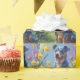Papel De Presente Pintura de Flores de Mola de Cachorro Azul