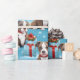 Piebald Pitbull cachorros com fitas vermelhas, sobre fundo azul claro, com presentes e flocos de neve... o melhor papel para enrolar seus presentes neste ano, um deve ter para as famílias de pitbull ou qualquer amante de cachorro - A © WhimsicalArtwork™ original -