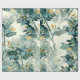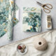 Um padrão uniforme de estilo vintage com flores amarelas e ramos de folhagem verde.