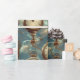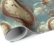 Papel de embrulho diverso apresenta um padrão surreal gerado pela IA de relógios de bolso flutuantes no estilo Steampunk no fundo do céu