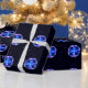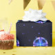 Imagens fractais roxas e azuis brilhantes que sugerem a Estrela do Norte (Polaris) e as luzes do Norte. A imagem é sobreposta a um céu noturno, fundo estrelado.