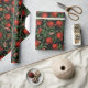 Ramais românticos com folhas esmagadas e frutas ricas vermelhas se esticam sobre um fundo preto. Uma camada secundária desaparece sutilmente, adicionando profundidade. Tradicionalmente pintados em papel com marcadores, os elementos são digitalizados e compostos em padrão no Photoshop.