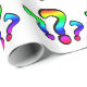 Um design com pontos de interrogação divertidos com preenchimento de gradiente de arco-íris e traços pretos pesados.