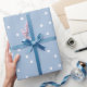 Bolinhas brancas com pontos roxos menores aninhados, tudo sobre fundo azul