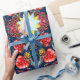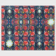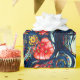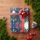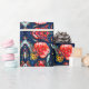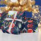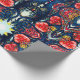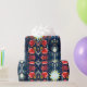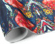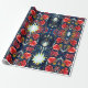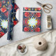 Papel de embrulho sofisticado com papoilas vermelhas laranja e espirais azuis mais alguns elementos geométricos e estrelas. Desenhado por Alexandra Cook aka Linandara para um futuro brilhante e feliz.
